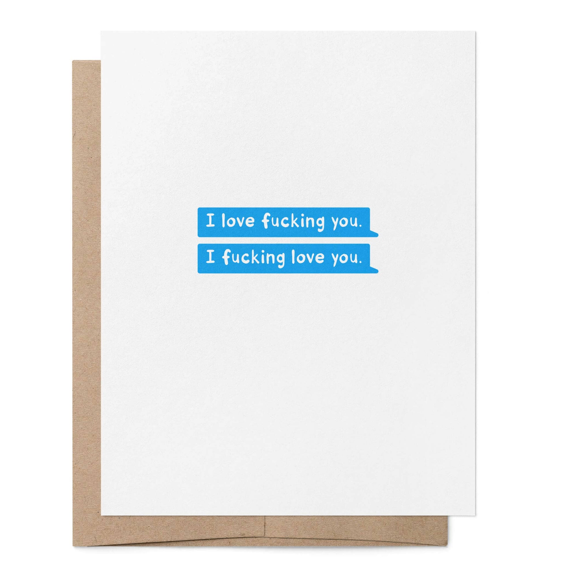 Sometimes the truth slips out in the best way possible! The "I Love F*cking You" card from That Queer Card Co. perfectly captures that playful mix-up with a cheeky twist. Featuring two chat bubbles from a messaging app, the first message reads "I love fucking you," quickly followed by a correction that says "I fucking love you." Whether intentional or not, this card is a fun and flirty way to express your feelings.