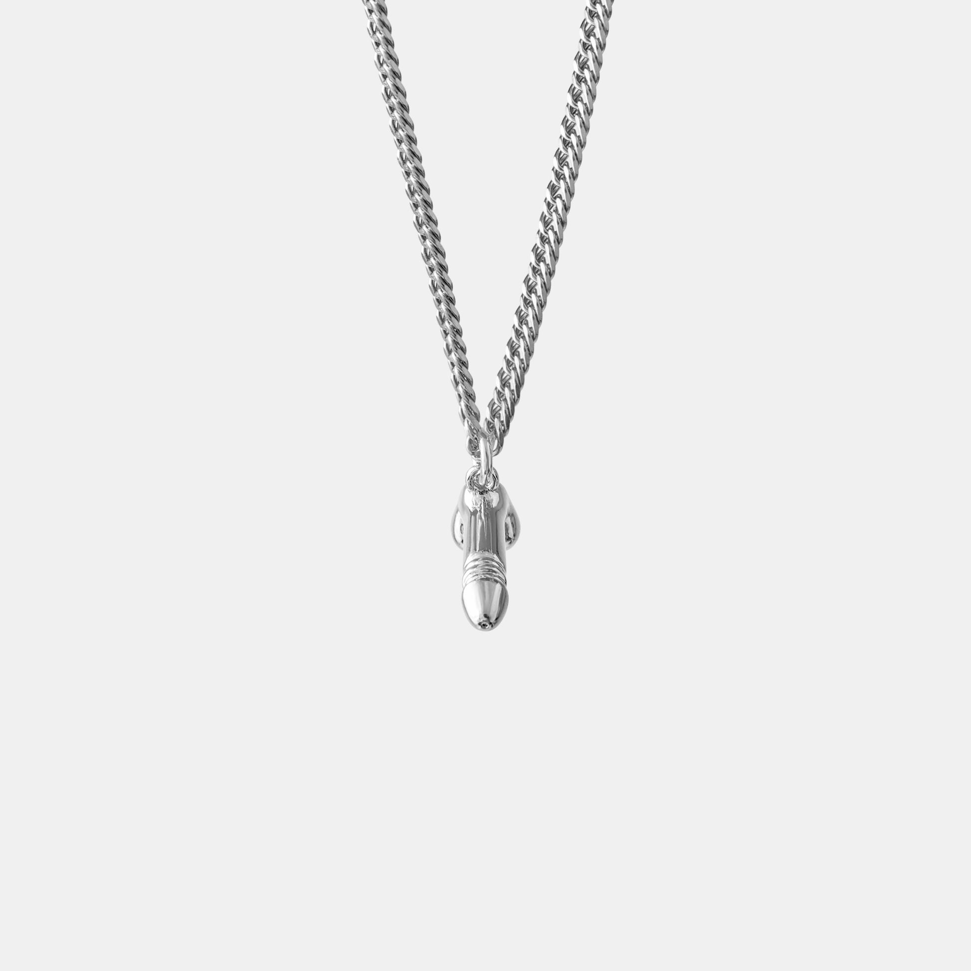 Compact, chic, and effortlessly fun, this silver-plated necklace is the ultimate conversation starter. Wear it to showcase your playful side with a touch of understated elegance—it’s the perfect mix of humor and style.