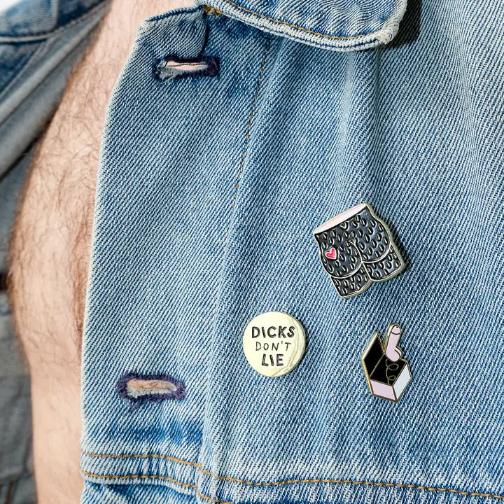 The Pin - Dick in a Box by Dicks Don’t Lie is the ultimate playful accessory for those who don’t take themselves too seriously. Its quirky design is perfect for adding a bit of fun to your wardrobe while maintaining a polished, stylish look. Perfect for gifting or keeping for yourself, this pin will bring a smile to anyone’s face!